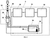 Продольно-крутильный ультразвуковой волновод 28 через формирователь датчика акустической обратной связи 30 соединен с модулем, в который входит блок автоматической подстройки частоты (АПЧ) 31, ультразвуковой генератор УЗГ-1-1М 32, индуктивный датчик акустической обратной связи 29, который в свою очередь подсоединен к магнитострикционному преобразователю 33 (ПМС1-1) волновода 28. В состав модуля также входят емкость 34 с насосом 35 и контуром охлаждения 36.