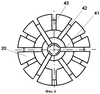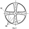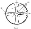 Загрузка (фиг.5, 6) насадочных камер 8, 9 выполнена из шаровидных элементов 12 диаметром 20-70 мм с 6-9-ю углублениями в сферической поверхности 44; причем толщина стенок между углублениями уменьшается к центру шара. Наиболее оптимальное количество углублений – 8, при идеальной укладке шара 4 углубления могут заполняться жидкостью. Кроме того, керамические элементы можно изготавливать из двух половинок и спекать между собой. Эффективной может быть также конструкция элементов, состоящая из 6, 7, 9 углублений. Исходя из размеров площади поверхности элементов загрузки в 1 м3 загрузки и промышленного изготовления подобных элементов, оптимальный диаметр шаровидных элементов колеблется в пределах 20-70 мм.