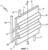 Теплообменник 1, который по схемным соображениям и для простоты конструкции выполнен в виде плоского параллелепипеда, имеет две по существу плоские изготовленные предпочтительно из металлических листов большие стенки 2 и 3, которые расположены на определенном расстоянии друг против друга и соединены между собой по внешнему краю небольшими по ширине стенками 4.