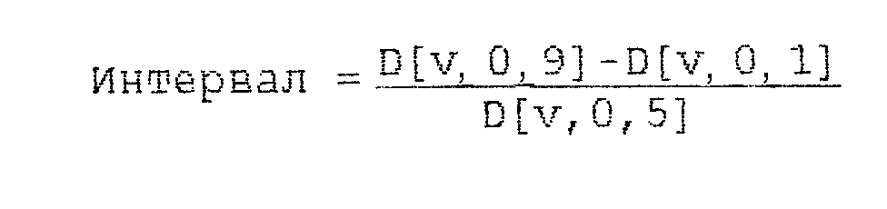 Примечание 1. Интервал рассчитывают из измеренного по Malvern’у распределения частиц по размерам и приводят данные ширины интервала распределения частиц по размерам, определенные следующим образом: