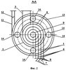 Кольцевые элементы 13 установлены в коллекторе 10 с возможностью независимого перемещения в осевом направлении, что совместно с установкой регулирующей заслонки 12 в патрубке 11 подачи газа в коллектор создает возможность гибкого регулирования распределения давления газа в коллекторе 10 в осевом направлении в соответствии с режимными параметрами гидроциклона.