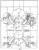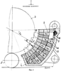 6. В процессе прокатки валки 2, 3 постоянно изнашиваются и воздушный зазор “ ” изменяется. В предлагаемой конструкции в процессе прокатки (и во время перевалок) зазоры “ ” поддерживаются постоянными путем перемещения (поворота) плит 4 с помощью гидроцилиндров 7 вокруг шарниров 5.