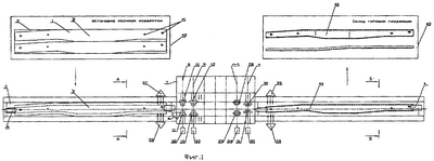 После завершения обкатки развертки снимают силовое воздействие плиты 4, извлекают окончательно изготовленный лонжерон 40 со стола-оправки 3 и передают его на склад 43 готовой продукции.