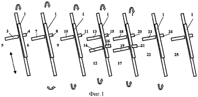 Таким образом, как следует из таблицы, достигаемый результат заявленного способа соответствует совокупности его признаков. Средства 5…22 в зависимости от требований технологического и экономического регламента могут быть последовательно расположены как строчечно, так и последовательно-линейно друг за другом. Передача трубчатой заготовки от первого прохода к последнему иллюстрируется фигурными стрелками.