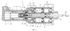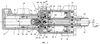 на фиг.3 – продольный разрез показанного на фиг.1 гидравлического тормозного устройства на второй стадии торможения.
