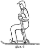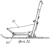 – широким разнообразием катания с горок: на снегокате для детей до 8-10 лет, изготавливаемом на полозьях аналога, без откидного сиденья могут кататься 2-3 человека (один сидя, один – два стоя); на “Семейном” снегокате могут кататься с горки с несложном рельефом от одного до 3-4 человек, из них двое взрослых, один сидя, второй стоя) в различных вариантах (фиг.5-7) стоящий сзади может обеспечить разгон снегокату вначале движения и ускорение в процессе движения за счет отталкивания ногой; большой интерес представляет катание одного человека: во-первых, можно кататься на крутых горках с различным рельефом, во-вторых, на обычных горках можно кататься сидя, стоя в пассивном режиме, а также в активном режиме – сначала разгон снегоката до максимальной скорости бега, затем ускорение движения за счет отталкивания ногой, затем для снижения сопротивления позу стоящего изменить на позу сидящего и продолжать движение по курсу, управляя ногами и манипулируя центром тяжести тела, этот режим катания может представлять даже спортивный интерес (по типу спуска на санках по желобу);