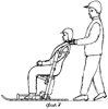 – возможностью катания по ровной дороге и с малым уклоном, а также завозки снегоката на горку, за счет толкания сзади идущего (фиг.5);