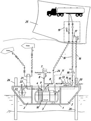 Для пояснения описываемой маломерной бункеровочной станции приведена схема на чертеже.