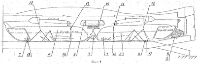 По патенту США №5090639, МГЖ В64С 1/20, РЖ ИСМ 33-9-93 [1] известно устройство для размещения грузов в пассажирском салоне самолета. Устройство содержит несколько контейнеров, которые в соответствии с их массой размещают над полом салона. Контейнеры по их размеру могут проходить через пассажирскую дверь самолета и устанавливаться под полкой для ручной клади. При размещении одного контейнера на каждой стороне салона между ними сохраняется пространство, достаточное для прохода пассажиров. Для установки контейнеров используют направляющие для пассажирских сидений. Распределение нагрузки на полу салона обеспечивает ее удержание в допустимых пределах даже при полной загрузке контейнеров. Устройство позволяет размещать пассажиров и багаж в одном месте. Этот самолет не может быть использован для транспортировки вертолетов, так как его грузовая кабина предназначена для транспортировки стандартных контейнеров.