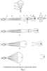 Если скорость самолета в момент катапультирования более 400 км/час, то электрическая команда на пирозамок не подается и замок остается закрытым. Поэтому при вводе парашюта после натяжения строп разрифовочные ленты натягиваются и разрывают рифовочное кольцо. Парашют наполняется как обычно (см. фиг 1), последовательность этапов наполнения в этом случае показана на фиг. 1а, 1б, 1в, 1г.