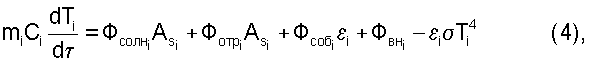 mi, Сi, Тi – масса единицы поверхности элемента КА, его теплоемкость и температура соответственно;