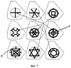 на фиг.7 схематично в плане показаны варианты выполнения донышка ячейки с основными компенсационными щелями разной конфигурации в части, расположенной на донышке ячейки, а также с дополнительными компенсационными щелями;