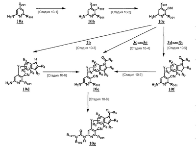 (где T1 представляет собой необязательно замещенный 5-10-членный ароматический гетероцикл, который может иметь X в кольце, или необязательно замещенный 3-10-членный гетероцикл, который может иметь X в кольце); R3, R4, R5, R6, R7, R8, R10 и R11 каждый независимо представляет собой атом водорода, атом галогена, цианогруппу, необязательно замещенную С1-6алкильную группу, необязательно замещенную С2-6алкенильную группу, необязательно замещенную С2-6алкинильную группу, необязательно замещенную С3-8циклоалкильную группу, группу, представленную формулой -CO-R13, группу, представленную формулой -NR14-CO-R13, группу, представленную формулой -SO2-R15, группу, представленную формулой -NR14-SO2-R15, или группу, представленную формулой -NR16aR16b; R9 представляет собой группу, представленную формулой -NR16aR16b, или группу, представленную формулой