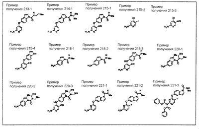 Пример 4 фармакологического теста: оценка противоопухолевой активности на клетках KP-1/VEGF на моделях подкожных ксенотрансплантатов Клетки рака поджелудочной железы, высоко экспрессирующие VEGF (KP-1/VEGF), суспендированные в ЗФР в концентрации 1·107 клеток/мл, трансплантировали под кожу правого бока 6-недельных самок мышей Balb/c (nu/nu) в объеме 0,1 мл. Когда объем опухоли достигал приблизительно 100 мм3, вводили перорально тестируемое вещество дважды в день в течение 2 недель по схеме 5 дней в неделю. Тестируемое вещество суспендировали в 0,5% метилцеллюлозе до вводимого объема 0,1 мл/10 г массы тела. Размер опухоли измеряли дважды в неделю с применением микрометрического штангенциркуля. Объем опухоли определяли с помощью измерения длинного и короткого диаметров опухоли микрометрическим штангенциркулем и расчета 1/2 x (длинный диаметр x короткий диаметр). Эксперимент проводили с применением 10 мышей в контрольной группе (введение растворителя) и 5 мышей в каждой группе с введением тестируемых соединений. Отношения (%) объема опухолей после введения тестируемого вещества к таковым у контроля представлены в таблице 4.