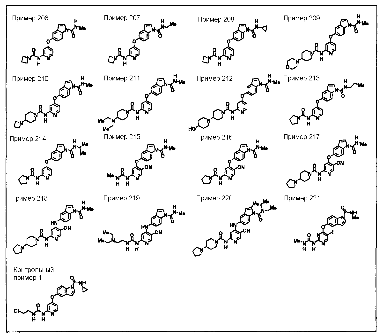 (где a равно 1 или 2))), его соль или гидрат; <2> соединение (за исключением N1-циклопропил-5-((2-(((2-хлорэтиламино)карбонил)амино)-4-пиридил)окси)-1H-1-индолкарбоксамида), представленное общей формулой где X1, X2, Y, R1, R2, R3, R4, R5, R6, R7, R8 и R9 имеют те же самые значения, что и X1, X2, Y, R1, R2, R3, R4, R5, R6, R7, R8 и R9 в<1> соответственно, его соль или гидрат; <3> соединение по <1> или <2>, соль соединения или гидрат, где Y представляет собой атом кислорода, группу, представленную формулой -NH-, или группу, представленную формулой -N(CH3)-; <4> соединение по <1> или <2>, соль соединения или гидрат, где Y представляет собой атом кислорода; <5> соединение по любому из <1>-<4>, соль соединения или гидрат, где один из X1 и X2 представляет собой группу, представленную формулой -CH=, а другой представляет собой атом азота; <6> соединение по любому из <1>-<4>, соль соединения или гидрат, где оба X1 и X2 представляют собой группу, представленную формулой -CH=; <7> соединение по любому из <1>-<6>, соль соединения или гидрат, где R3, R4, R5, R6 и R8 каждый представляют собой атом водорода и R7 представляет собой атом водорода, атом галогена или необязательно замещенную С1-6алкильную группу; <8> соединение по любому из <1>-<7>, соль соединения или гидрат, где R9 представляет собой группу, представленную формулой -NHR17 (где R17 представляет собой необязательно замещенную С1-6алкильную группу, С3-6алкинильную группу, С3-8циклоалкильную группу, необязательно замещенную С6-10арильную группу или необязательно замещенную 5-10-членную гетероарильную группу); <9> соединение по любому из <1>-<7>, соль соединения или гидрат, где R9 представляет собой группу, представленную формулой -NR18aR18b (где R18a и R18b каждый независимо представляет собой С1-6алкильную группу); <10> соединение по любому из <1>-<7>, соль соединения или гидрат, где R9 представляет собой группу, представленную формулой