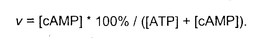 -DMEM, содержащей [3H]-аденин, который захватывается клетками и последовательно превращается в меченый радиоактивностью аденозин, AMP, ADP и, наконец, в меченый радиоактивностью ATP. Спустя 2 часа клетки дважды промывают забуференным фосфатом солевым раствором (pH 7,4) в присутствии 1 мМ изобутилметилксантина (IBMX, ингибитора фосфодиэстераз, которые гидролизуют cAMP в AMP). Вслед за этим клетки стимулировали 10 нМ веществом Р в отсутствие или присутствии испытуемых соединений в соответствующих разведениях в PBS/IBMX в течение 20 мин. После стимуляции среду отсасывали и клетки экстрагировали 5% трихлоруксусной кислотой. Радиомеченные ATP и cAMP извлекали из экстракта, используя последовательную колоночную хроматографию. Экстракты разделяли ионообменной хроматографией на колонках DOWEX 50WX4, позволяющих извлекать ATP. Колонки последовательно помещали на верх колонок с оксидом алюминия и элюировали водой. Извлечение cAMP проводили элюированием колонок с оксидом алюминия 100 мМ имидазолом (pH 7,4). Во фракциях и ATP, и cAMP определяли радиоактивность, используя жидкостной сцинтиляционный счетчик, и рассчитывали коэффициенты превращения как:
