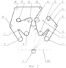 Одновременно нижние направляющие ролики 4, дополнительные направляющие ролики 7 и средние направляющие ролики 5 размещены так, что отрезки ленты 3, расположенные между ними, образуют угол =10°.