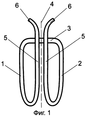 на фиг.2 – клемма, у которой в плане петли ветвей в состоянии предварительного монтажа расположены асимметрично относительно продольной оси клеммы,