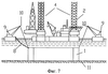 Изобретение поясняется чертежами, где на фиг.1 показано конструктивное устройство защитной ледостойкой конструкции (вид сверху), на фиг.2 – разрез 1-1 на фиг.1, фиг.3 – разрез 2-2 на фиг.1. На фиг.4 показана защитная ледостойкая конструкция в сборе с СПБУ, установленная на дно в точке бурения (разрез 1-1 на фиг.5), на фиг.5 – защитная ледостойкая конструкция в сборе с СПБУ (вид сверху). На фиг.6-11 показана технологическая последовательность операций по стыковке защитной ледостойкой конструкции с СПБУ, установке ее вместе с СПБУ на дно для бурения разведочных скважин в ледовых условиях.