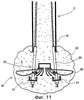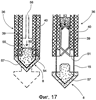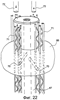 В результате воздействия поршнем на верхний отдел 55 наконечника 38 последний опускается вниз с установкой в нижнем положении, показанном на фиг.17 пунктирной линией. При этом свободные концы 50 элементов 40 раздвигаются.