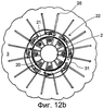 На фиг.12b изображено армирующее устройство 22, раздвинутое под нижней частью фундаментной сваи 2. На чертеже показано, что арматурные детали 26 раздвинуты наружу от центра фундаментной сваи 2 и вместе с кольцевыми элементами 31, трубами 20 и тросами 21 формируют арматурную сеть, расположенную на требуемой глубине под нижней частью фундаментной сваи 2 в полости 3.