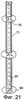 На фиг.9 изображена нижняя часть 19 фундаментной сваи 2, в которой установлено армирующее устройство 22, еще в одном варианте выполнения. Устройство содержит некоторое количество труб 20, через каждую из которых пропущен трос 21, соединенный с нижней частью трубы 20 при помощи тросового зажима 23. В верхней части труб 20 установлены стопоры 24. Как показано на чертеже, стопоры 24 имеют Г-образную форму поперечного сечения.