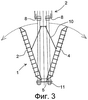 Длина данных труб либо соответствует высоте раздвинутого армирующего устройства, либо превышает эту высоту. Следовательно, данные элементы, работающие на растяжение, например тросы, защищены от спутывания, которое может вызвать концентрацию напряжений, в результате которой уменьшается прочность тросов, а в худшем случае происходит их разрыв. Кроме того, предотвращено запутывание тросов в арматурных деталях.