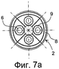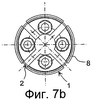 На фиг.7а показан вид в разрезе армирующего устройства 1, расположенного внутри фундаментной сваи 2. Соединение 9 выполнено в виде резьбового соединения с использованием пластины, причем пластинная часть этого соединения разделена на четыре части и имеет продолжение в виде стопора 8.