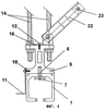 Оба вставленных один в другой четырехгранных профиля 22 фиксируются друг относительно друга в их соответствующих отрегулированных положениях зажимными винтами 23. Помимо этого четырехгранные профили 22 крепятся к (не показанному) перекрытию помещения, для чего может использоваться конструкция любых типов. Такая конструкция может состоять, например, из двух шарнирно соединенных с четырехгранными профилями 22 уголков 24, привинченных к перекрытию помещения крепежными винтами 25.