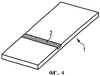 На фиг.4 показан третий вариант выполнения фильтрующего элемента 1 с поперечно расположенным усиливающим участком 2. В целом же усиливающий участок 2 может располагаться не только поперечно или параллельно краям фильтрующего элемента 1, но и под любым углом к ним. Любая ориентация усиливающего участка 2 относительно краев фильтрующего элемента 1 соответствует настоящему изобретению. В показанном на фиг.4 варианте усиливающий участок 2 образован полоской внедренного в материал фильтрующего элемента припоя. Для образования подобного усиливающего участка можно использовать то обстоятельство, что пористый материал, из которого изготовлен фильтрующий элемент 1, способен впитывать жидкий припой.