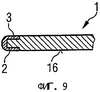 Окончательно изготовленный таким способом усиленный фильтрующий элемент 1 показан на фиг.9. Такой фильтрующий элемент 1 имеет на его краевом участке 17 усиливающий участок 2. Этот усиливающий участок, соответственно образующую его металлическую полоску можно при изготовлении фильтра для очистки ОГ соединять с соседними металлическими листами, например, пайкой. Помимо этого, краевой усиливающий участок 2, образованный загнутой вокруг края фильтрующего элемента 1 металлической полоской 3, обеспечивает наиболее эффективную его защиту от раздувания.