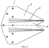 На фиг.2 – элемент I на фиг.1 в увеличенном виде (шеврон с рассекателями).