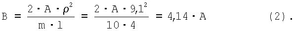 в формуле 1). Для этих параметров настройки, а также с учетом того, что работа затрачивается на изгиб m=10 образцов пряжи, жесткость на изгиб (В) зависит от затраченной на изгиб работы (А) по формуле 2: