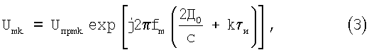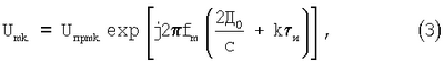 В результате на выходе АЦП 6 формируется М последовательностей из К чисел, каждое из которых соответствует значению амплитуды принимаемого сигнала Unpmk от k-го участка дальности; подстрочный индекс у символа “Uпрmk” означает, что соответствующая амплитуда принимаемого сигнала Uпрmk получена при приеме радиоимпульса с несущей частотой fm, а подстрочный индекс определяет порядковый номер амплитуды принимаемого сигнала Uпрmk в каждой из М последовательностей.