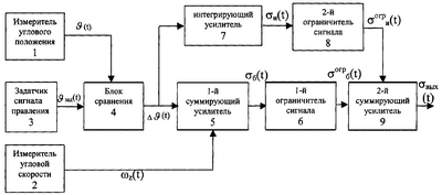 Сигнал, сформированный в соответствии с базовым законом управления (2), дополняется сигналом интегральной компоненты и(t), который формируется интегрирующим усилителем 7 по сигналу рассогласования (3)