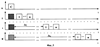 На фиг.4 приведены диаграммы, иллюстрирующие первый режим работы, на фиг.5 – второй режим. По оси абсцисс на всех диаграммах отложено время. На диаграммах А условно показаны командные кодовые посылки, передаваемые по командной линии связи от центрального пульта управления в аппаратуру каждого пациента.