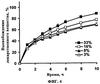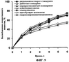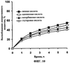 Высвобождение действующего вещества анализировали, проводили по методу на основе однокомпартментной модели (с использованием аппарата с лопастной мешалкой), описанному в Фармакопее США USP XXIV. Высвобождение гидросульфата пиперазиномочевины исследовали при рН 1 (0,1н. соляная кислота) и в фосфатном буферном растворе при рН 4,5 и 6,8 (состав см. в USP XXIV). Для регулирования условий оседания, которые обеспечивают возможность первичного контроля высвобождения гидросульфата пиперазиномочевины благодаря предлагаемой композиции, при необходимости к высвобождающей среде можно добавлять поверхностно-активное вещество (например, ДСН) или гидроксипропил- -циклодекстрин.