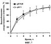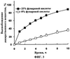 На фиг.6 показана зависимость высвобождения гидросульфата пиперазиномочевины (33% гидросульфата пиперазиномочевины, 12,5% Kollidon SR® и 16% фумаровой кислоты в пересчете на общую массу таблетки) от значения рН.