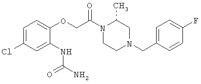 (2R)-1-((4-хлор-2-(уреидо)фенокси)метил)карбонил-2-метил-4-(4-фторбензил)пиперазин, называемый далее кратко пиперазиномочевина, имеет следующую структуру: