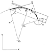 В общем случае обрабатываемую кривую между соседними опорными точками представляют двумя дугами окружностей с определенными направлениями касательных в опорных точках и с общей касательной в точке сопряжения. Расчетные формулы для определения параметров траектории инструмента определяют в предположении, что длины отрезков касательных на участке между опорными точками i и (i+1) не равны. При этом длинами отрезков касательных являются расстояния от опорных точек до точки их пересечения.