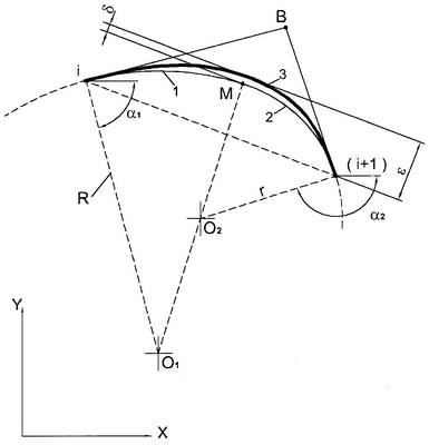 Из сопоставительного анализа данных таблицы 2 видно, что для всех участков контура радиус первой окружности R соизмерим с радиусом кривизны в i-ой опорной точке, а радиус второй окружности r приближается к значению радиуса кривизны в (i+1)-ой опорной точке.