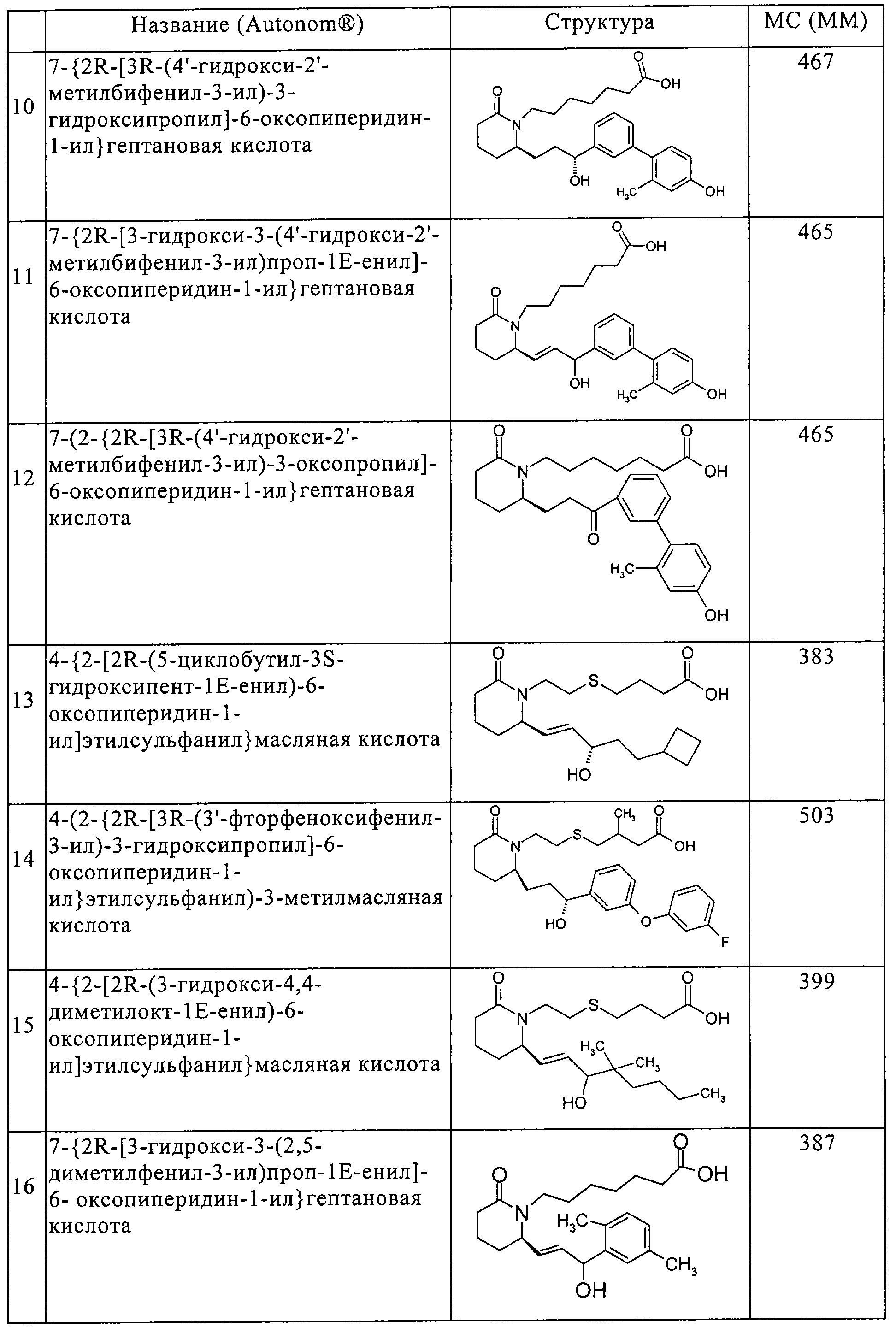 1. Соединение формулы I где m равно от 1 до 4, n равно от 0 до 4, А означает алкил, арил, трифторметилфурил, арилалкил, арилциклоалкил, циклоалкилалкил или арилоксиалкил, Е означает -СНОН- или -С(O)-, Х означает -(СН2)2– или -СН=СН-, Y означает -СН2-, арилен, -S-, Z означает -СООН, R1, R2, R3, R4, R5, R6, R7, R8, R9 и R10 каждый независимо означает водород или алкил, или его фармацевтически приемлемая соль или сольват, индивидуальный изомер или рацемическая или нерацемическая смесь изомеров. 2. Соединение по п.1, где Е означает -СНОН-. 3. Соединение по п.1, где Y означает -СН2-. 4. Соединение по п.1, где Y означает -S-. 5. Соединение по п.1, где Y означает арилен. 6. Соединение по п.1, где Х означает -СН=СН-. 7. Соединение по п.1, где Х означает -(СН2)2-. 8. Соединение по п.1, где А независимо выбирают из группы, включающей алкил, арил, трифторметилфурил, арилалкил, арилциклоалкил, циклоалкилалкил и арилоксиалкил. 9. Соединение по п.1, где А означает алкил. 10. Соединение по п.1, где А означает арил. 11. Соединение по п.1, где А означает трифторметилфурил. 12. Соединение по п.1, где А означает арилалкил. 13. Соединение по п.1, где А означает арилциклоалкил. 14. Соединение по п.1, где А означает циклоалкилалкил. 15. Соединение по п.1, где А означает арилоксиалкил. 16. Соединение по п.1, где указанное соединение означает соединение формулы II где Y означает -СН2– или -S-, а А и Х имеют значения, указанные в любом из пп.1-15. 17. Соединение по п.16, где указанное соединение имеет формулу III где А, X и Y имеют значения, указанные в любом из пп.1-15. 18. Соединение по п.17, где Х означает -СН=СН-. 19. Соединение по п.17, где Y означает арилен. 20. Соединение по п.1, где соединение выбирают из группы, включающей а)4-{2-[(R)-2-((S)-(Е)-5-циклопропил-3-гидроксипент-1-енил)-6-оксопиперидин-1-ил]этилсульфанил}масляная кислота, б)4-(2-{2R-[3R-(4′-хлор-2′-метилбифенил-3-ил)-3-гидроксипропил]-6-оксопиперидин-1-ил}этилсульфанил)масляная кислота, в)7-{2R-[3S-гидрокси-4-(4-гидрокси-3-метилфенил)бут-1Е-енил]-6-оксопиперидин-1-ил} гептановая кислота, г)7-{2R-[3S-гидрокси-4-(3-метоксиметилфенил)бут-1Е-енил]-6-оксопиперидин-1-ил}гептановая кислота, д)7-{2R-[3S-гидрокси-4-(4-гидрокси-3-изопропилфенил)бут-1Е-енил]-6-оксопиперидин-1-ил}гептановая кислота, е)4-(2-{2R-[3-гидрокси-3-(1-фенилциклопропил)проп-1Е-енил]-6-оксопиперидин-1-ил}этилсульфанил)масляная кислота, ж)4-(2-{2R-[3R-3-гидрокси-3-(трифторметилфуран-2-ил)пропил]-6-оксопиперидин-1-ил}этилсульфанил)масляная кислота, з) 4-(2-{2R-[3R-гидрокси-3-(1-фенилциклопропил)пропил]-6-оксопиперидин-1-ил} этилсульфанил)масляная кислота, и)4-(2-{2R-[3S-гидрокси-4-(3-метоксиметилфенил)бут-1Е-енил]-6-оксопиперидин-1-ил}этилсульфанил)масляная кислота, к)7-{2R-[3R-(4′-гидрокси-2′-метилбифенил-3-ил)-3-гидроксипропил]-6-оксопиперидин-1-ил}гептановая кислота, л) 7-{2R-[3-гидрокси-3-(4′-гидрокси-2′-метилбифенил-3-ил)проп-1Е-енил]-6-оксопиперидин-1-ил}гептановая кислота, м)7-(2-{2R-[3R-(4′-гидрокси-2′-метилбифенил-3-ил)-3-оксопропил]-6-оксопиперидин-1-ил}гептановая кислота, н)4-{2-[2R-(5-циклобутил-3S-гидроксипент-1Е-енил)-6-оксопиперидин-1-ил]этилсульфанил} масляная кислота, о)4-(2-{2R-[3R-(3′-фторфеноксифенил-3-ил)-3-гидроксипропил]-6-оксопиперидин-1-ил}этилсульфанил)-3-метилмасляная кислота, п)4-{2-[2R-(3-гидрокси-4,4-диметилокт-1Е-енил)-6-оксопиперидин-1-ил]этилсульфанил}масляная кислота, р)7-{2R-[3-гидрокси-3-(2,5-диметилфенил-3-ил)проп-1Е-енил]-6-оксопиперидин-1-ил}гептановая кислота, с)7-[2R-(3-гидрокси-4-феноксибут-1Е-енил)-6-оксопиперидин-1-ил]гептановая кислота, т)7-{2R-[3-гидрокси-