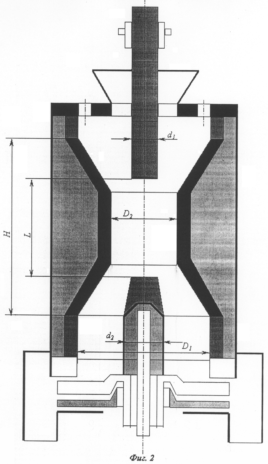 На фиг.2 показаны основные размеры электрокальцинатора, которые учитываются в приводимых в заявке соотношениях: