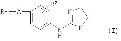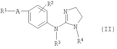 5. Имидазолин-2-иламинофениламиды по п.3 или 4, где R1 означает фенил, необязательно замещенный одним, двумя или тремя заместителями, независимо выбранными из группы, включающей алкил, алкенил, алкокси, необязательно замещенный арил, необязательно замещенный арилокси, аралкилокси, галоген, галогеналкил, галогеналкокси, гидрокси, гидроксиалкил, алкилсульфонил, алкоксиалкилокси, гидроксиалкилокси, циано, гидрокси, циклоалкил, циклоалкилокси, циклоалкилалкокси, амино, алкиламино, диалкиламино, необязательно замещенный гетероциклил, необязательно замещенный гетероциклилокси, необязательно замещенный гетероциклилсульфонил, необязательно замещенный гетероциклилалкилокси, сульфамоил, алкилсульфамоил, диалкилсульфамоил или сульфониламино.