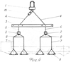 Таким усовершенствованием является: подвеска соединена с поперечными траверсами посредством продольной траверсы, соединенной с подвеской гибкими тросами, при этом на продольной траверсе установлены, по крайней мере, два уголка, стороны которых соединены гибкими тросами с поперечными траверсами.