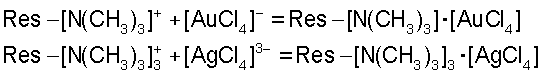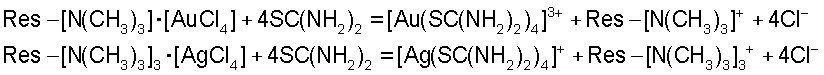 При этом происходит изменение заряда, анионные комплексы превращаются в катионные, за счет этого полностью элюируются с фильтра.