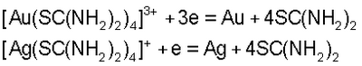 С фильтра драгоценные металлы смываются тиомочевиной SC(NH2)2, схема 3.