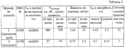 Изобретение относится к области гидрометаллургии платины, в частности к способам извлечения платины из солянокислых растворов сложного состава, например из маточных растворов аффинажа платины, и других технологических растворов сорбцией. Техническим результатом является повышение степени извлечения платины, повышение производительности процесса – выхода извлеченной платины с единицы объема сорбента, а также повышение степени концентрирования платины. Способ включает сорбцию платины на селективном к платине комплексообразующем ионите, содержащем тиомочевинные функциональные группы, последующую промывку ионита подкисленной водой и десорбцию платины раствором тиомочевины, подкисленным соляной кислотой. Перед сорбцией доводят окислительно-восстановительный потенциал исходного раствора до значения, равного или меньшего значению, определяемого уравнением Е=0,62-0,059 lgCCl –, где Е – окислительно-восстановительный потенциал раствора (по отношению к водородному электроду). В; CCl – суммарная концентрация в растворе хлорид-иона, моль/л, путем обработки восстановителем. 2 табл.