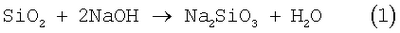Изобретение относится к области целлюлозно-бумажного производства, может быть использовано при получении волокнистых полуфабрикатов из однолетних растений, в частности из соломы риса. Широко известен способ получения целлюлозы из однолетних растений путем щелочной варки в водном растворе едкого натра и сульфида натрия при температуре 150…160°С под давлением в одну стадию [Ю.Н.Непенин. Технология целлюлозы. Т.2. М.: Лесная промышленность, 1990 г.]. Известен также способ получения целлюлозного материала, согласно которому процесс варки ведут путем щелочной обработки измельченного растительного сырья при повышенной температуре в две стадии при разных рН [Пазухина Г.А. Ступенчатые методы производства целлюлозы. М.: Лесная промышленность, 1990, 216 с.]. Наиболее близким к предлагаемому является двухстадийный способ получения целлюлозы путем щелочной варки исходного сырья в растворе едкого натра при нагревании с предварительным предгидролизом исходного сырья, при этом предгидролиз ведут разбавленной минеральной кислотой или варкой водой [Ю.Н.Непенин. Технология целлюлозы. Т.2. М.: Лесная промышленность, 1990 г., с.229], при этом в качестве исходного сырья используется тростник, а обработку ведут серной кислотой [Ю.Н.Непенин. Технология целлюлозы. Т.3. М.: Лесная промышленность, 1990 г., с.444]. Известные процессы не позволяют перерабатывать целлюлозосодержащее сырье с высоким содержанием минеральных компонентов (SiO2). Это связано с тем, что в процессе варки SiO2 переходит в раствор в виде малорастворимых силикатов по реакции (1), что приводит к существенному снижению выхода и качества продукта (ухудшение удаления лигнина), а также к возникновению силикатных отложений на поверхностях технологического оборудования по реакции (2). Кроме того, при реализации известного способа происходит удаление гемицеллюлоз, а попутное уменьшение силикатной зольности обусловлено разрушением покрывной ткани. Это приводит к тому, что получаемая целлюлоза пригодна только для химобработки. Задачей изобретения является улучшение качества получаемого целлюлозного материала при одновременном повышении выхода целевого продукта. Поставленная задача решается тем, что процесс получения целлюлозы ведут путем щелочной варки целлюлозосодержащего сырья при повышенной температуре, при этом в качестве целлюлозосодержащего сырья используют рисовую солому, предварительно подвергнутую обескремниванию путем обработки раствором NaOH концентрации 20-60 г/л при температуре не менее 70°С и продолжительности не менее 20 мин в присутствии антрахинона, с последующим отделением целлюлозосодержащего сырья от щелочного раствора. Антрахинон вводят в количестве не менее 0,01% от массы а.с. целлюлозосодержащего сырья. Щелочную варку целлюлозосодержащего сырья ведут известным способом в растворе NaOH при расходе 8-14% от а.с. целлюлозосодержащего сырья в течение не менее 60 мин. Заявляемый способ позволяет повысить выход целевого продукта, снизить расход химикатов на варку за счет удаления кремнийсодержащих соединений на стадии щелочной обработки растительного сырья. Заявляемый прием обработки целлюлозосодержащего сырья обеспечивает обескремнивание только лишь посредством протекания процесса экстракции, но не разрушения оболочек и гемицеллюлоз. Реализуемый механизм обработки исходно