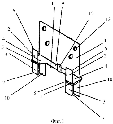 Полка снабжена вырезом, отходящим от плеч зажимов под углом на глубину 3-7 мм и снабженным язычком, вырубленным из полки и загнутым под углом 90° в сторону основания.